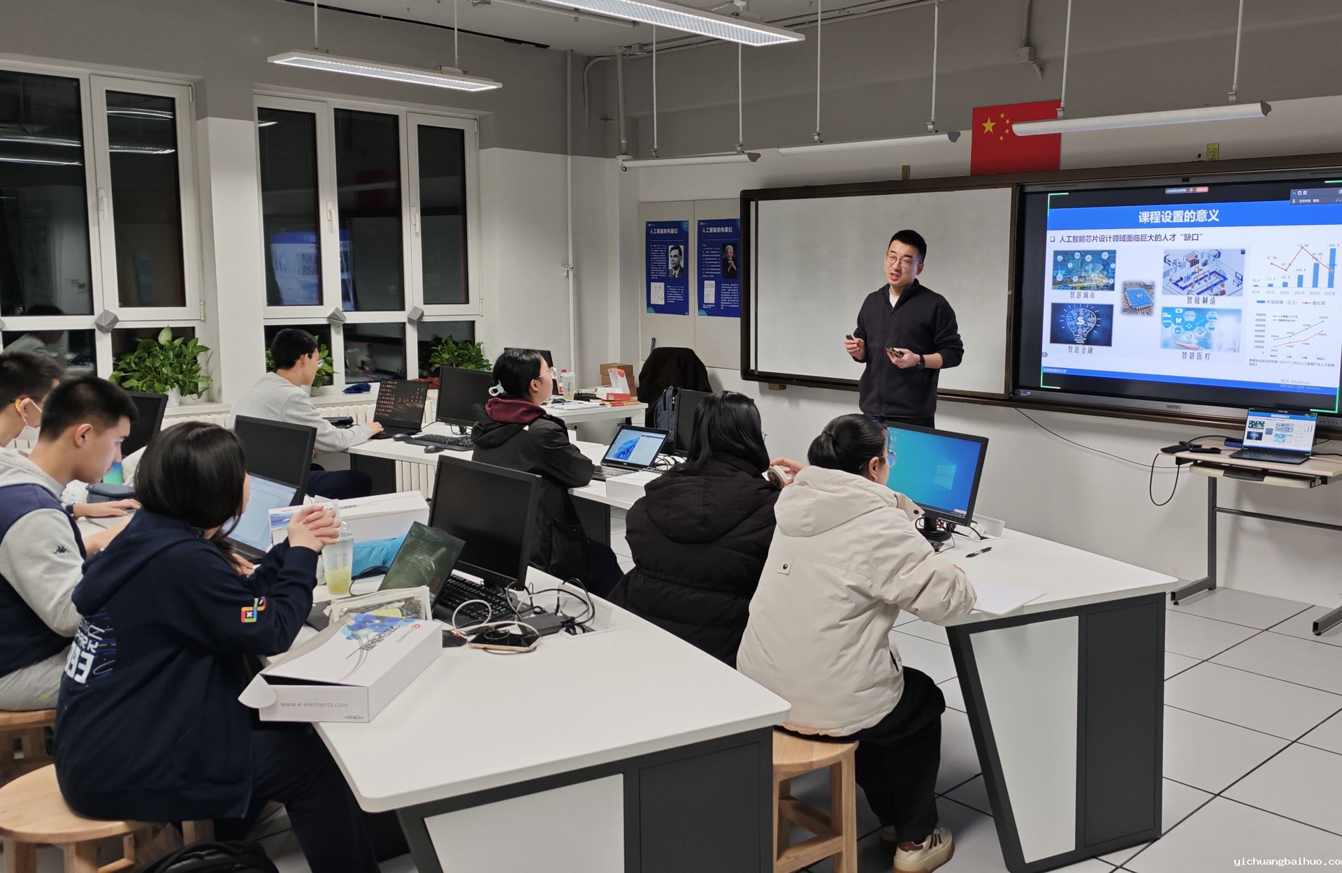 该课程于2025年春季学期正式启动,面向十一学校初三、高一年级学生开放。课程主讲人北航集成电路学院潘彪副教授,是国内人工智能芯片领域青年骨干,依托其团队自研的神经网络加速器(APU),课程首次将“大学实验室级”芯片设计课题转化为中学生可实践的项目,中学生能直接在硬件上实现神经网络部署。课堂中,图像风格迁移、实时口罩检测系统等趣味项目,让抽象的人工智能算法化为可见的科技作品,实现从理论到工程的无缝对接。
