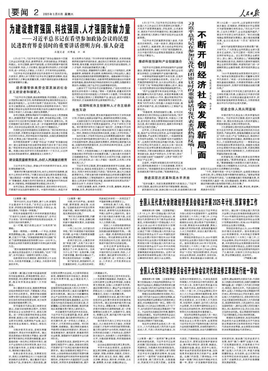 《人民日报》2025年3月8日(本报记者 刘博通 江琳)报道: