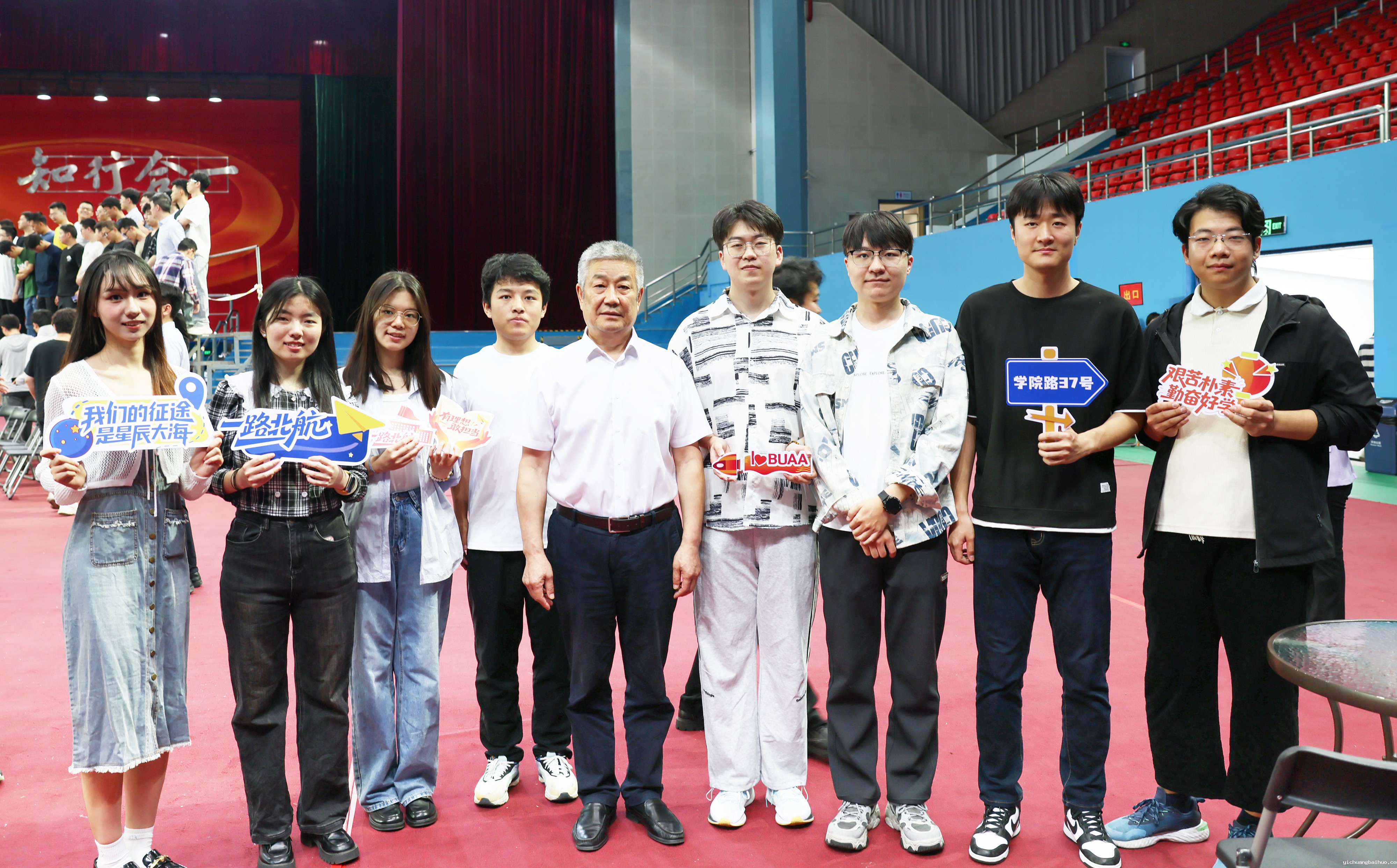合影现场,气氛热烈,青春的朝气在每一名毕业生身上熠熠生辉。每名毕业生身上都洋溢着青春活力。“心怀家国,空天逐梦”“矢志长空,铁翼乘风”等激昂的口号此起彼伏,与掌声、欢呼声交织共鸣,生动诠释着毕业生们对母校的深深眷恋、对未来的无限憧憬以及身为北航人的无上荣光与自豪。