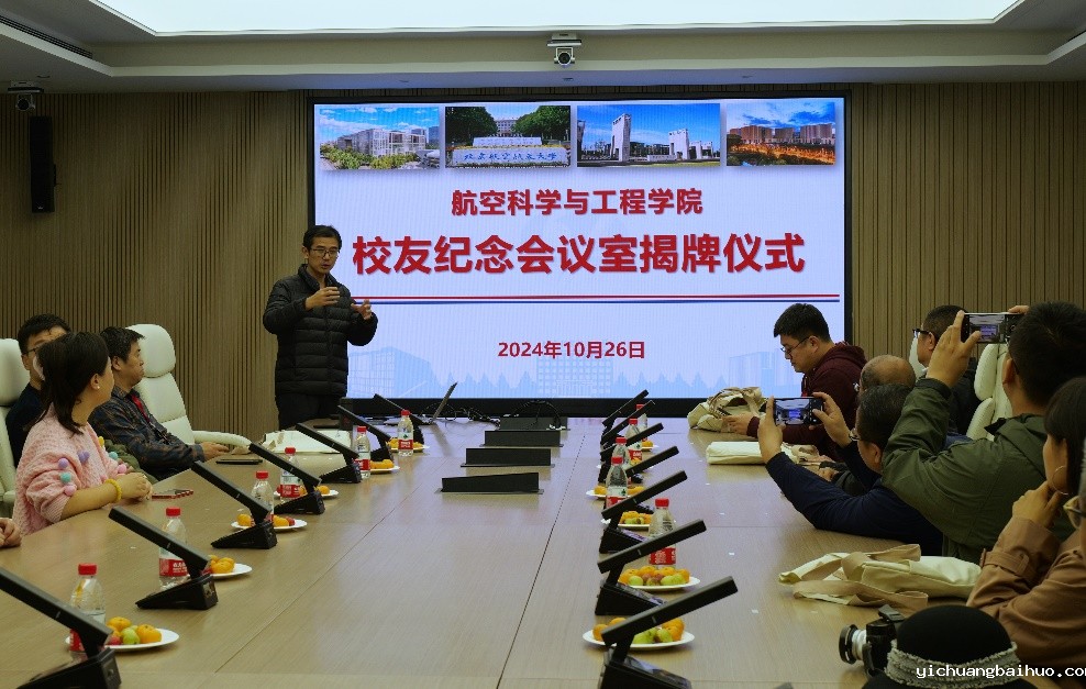 开云体育手机APP网页网10月31日电(通讯员 杨锐 郭金)10月26日下午,航空学院在沙河校区航空大楼(科研二号楼)716会议室举行首批校友纪念会议室揭牌仪式。航空学院相关负责人、首批校友纪念会议室捐赠班级代表、在校学生代表等30余人参加仪式。