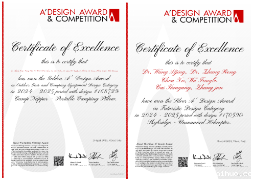 开云体育手机APP网页网5月8日电(通讯员 申晓斌)近日,航空科学与工程学院王黎静团队与机械工程及自动化学院张融团队联合完成的“Restbase小睡枕”和"SkyBridge无人直升机"两件作品,在国际著名设计创新比赛——意大利A' Design比赛中分别摘得金奖(top 1%)和银奖(top 3~5%)。